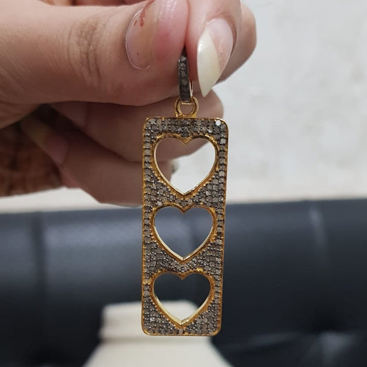 Good Looking Handmade Designer Hearts Pendant With Pave Diamond, Heart Stylish Pendant, Silver Jewelry