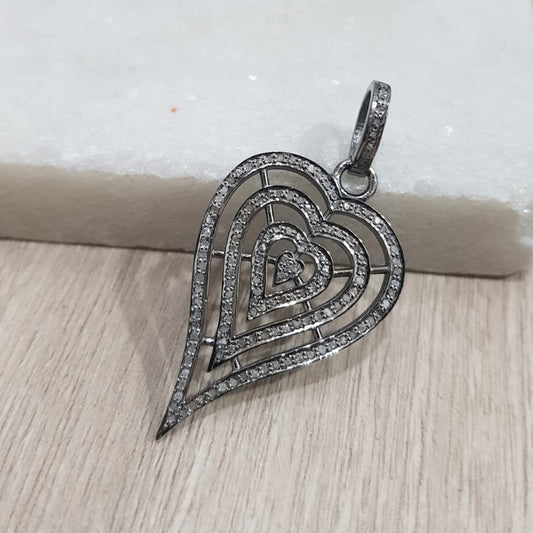 Unique Designer Handmade Heart Style Pendant Pave Diamond, Stylish Heart pendant, Silver Jewelry