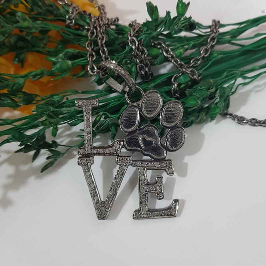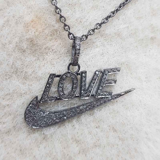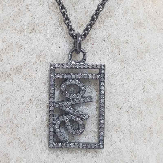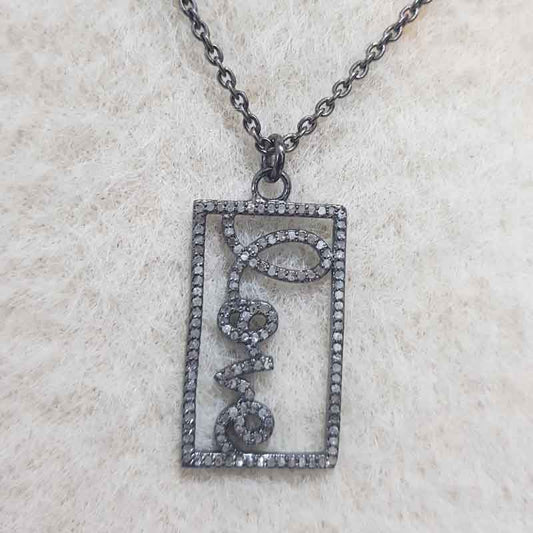 Gorgeous Handmade Love Word Designed Pave Diamond Silver Pendant, Stunning Love Necklace, Silver Jewelry