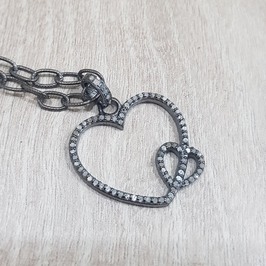 Graceful Heart Lines Design Pave Diamond Silver Black Pendant, Many Heart layers Necklace, Silver Jewelry