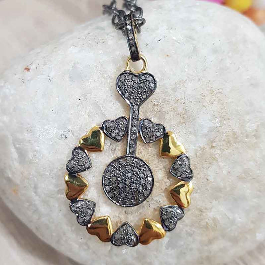 Round Heart Style With Natural Pave Diamond Silver Pendant, Heart Round Necklace, Silver Jewelry