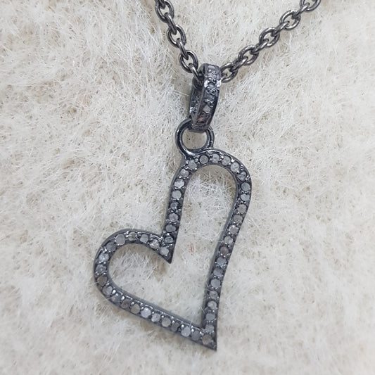 Beautifully 925 Sterling Natural Pave Diamond Silver Heart Love Pendant, Couple Gift, Silver Jewelry