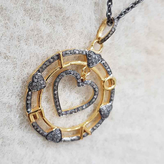 Unique Fancy Designer With Little Heart Pave Diamond Silver Pendant, Shine And Bright Round Heart Pendant, Gift For Her, Him