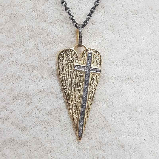 Handmade Heart Designer With Pave Cross Pendant, Gift For Her, Him