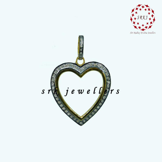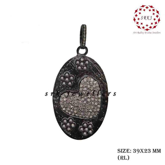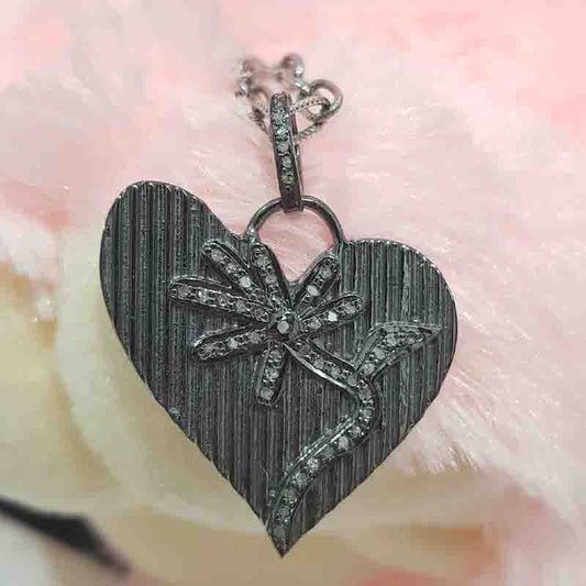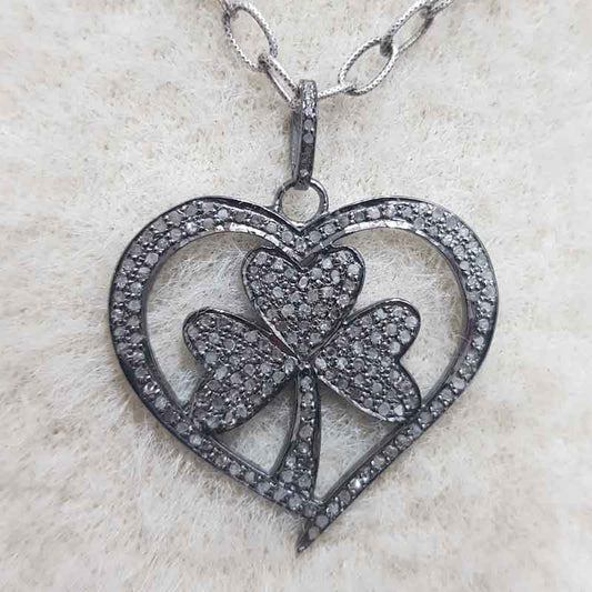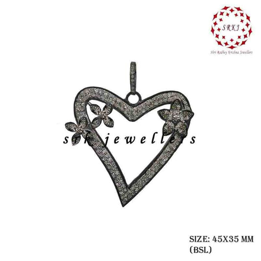 Black Designer Heart Shape 925 Sterling Silver Pave Diamond Pendant, Wedding Gift