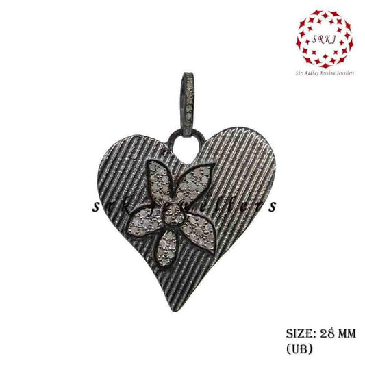 Unique Heart Designer Pave Diamond 925 Sterling Silver Pendant, Flower heart Necklace, Gift For Lover
