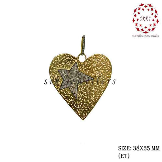 Gorgeous Heart Pendant With Pave Diamond Star, Heart Stylish Necklace, Silver Jewelry