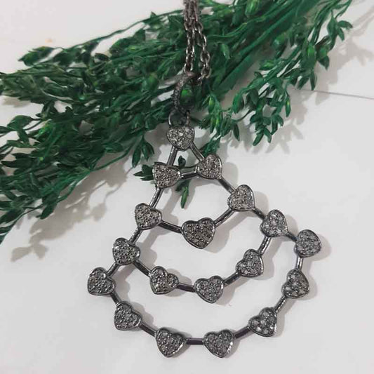 3 Joined Heart Oval shaped Pave Diamond silver Pendant, Stylish Heart Necklace, Silver Jewelry