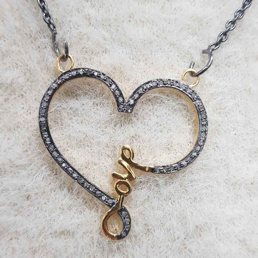 Heart With Love Designer pave Diamond Pendant, Love heart Shape Necklace, Gift For Lovers, Valentines Day Gift