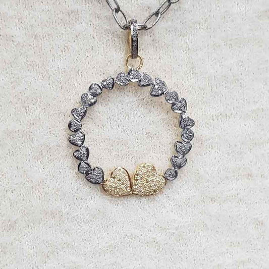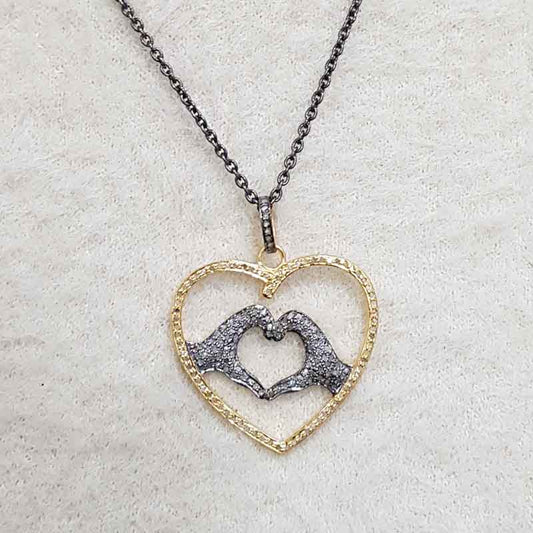 Joined Heart Designer Pave Diamond 925 Sterling Silver Pendant, Silver Jewelry