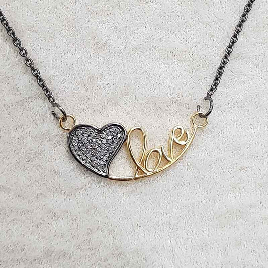 Yellow & Black Fancy Designer Handmade Style LOVE Pendant, Gift For Lovers, Silver Jewelry