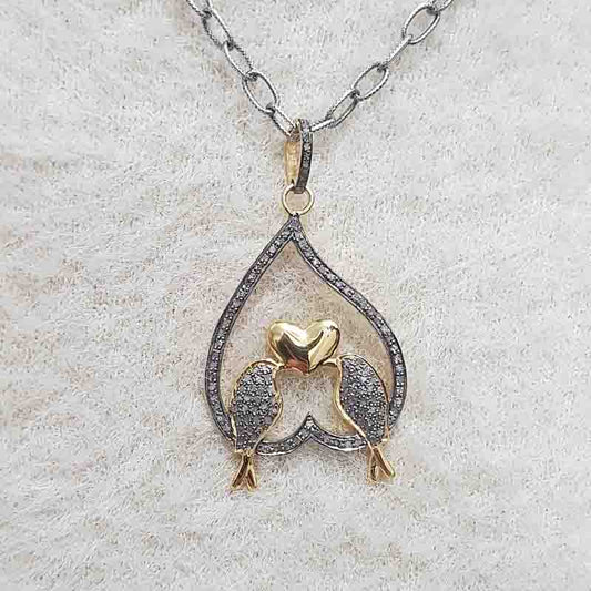 Beautiful Love Bird Pendant With Pave Diamond layers, Stunning heart Necklace, Love Bird Necklace, Gift For Love Birds