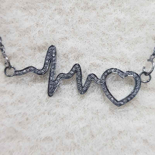 Heart Beat Pendant With Pave Layers, Heart Beat Necklace, Silver Jewelry, Gift For Headband, Wife