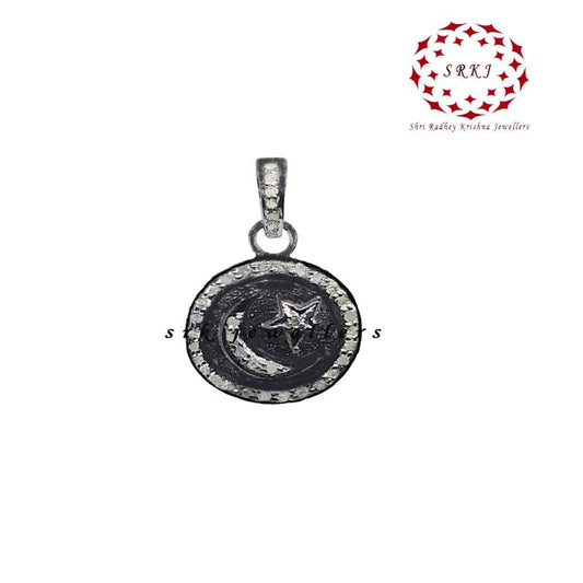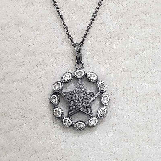 Natural Pave Diamond And Polki Stone Round With Star Pendant, attractive Design, Wedding Gift