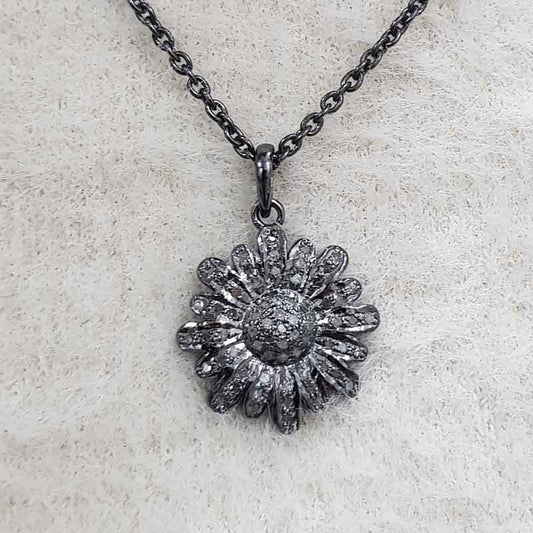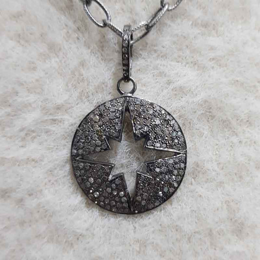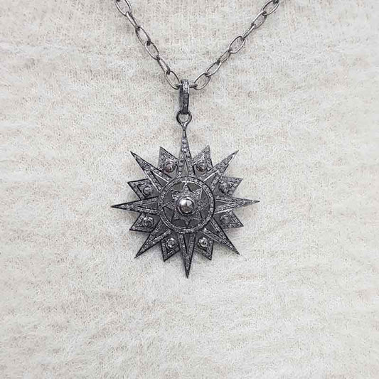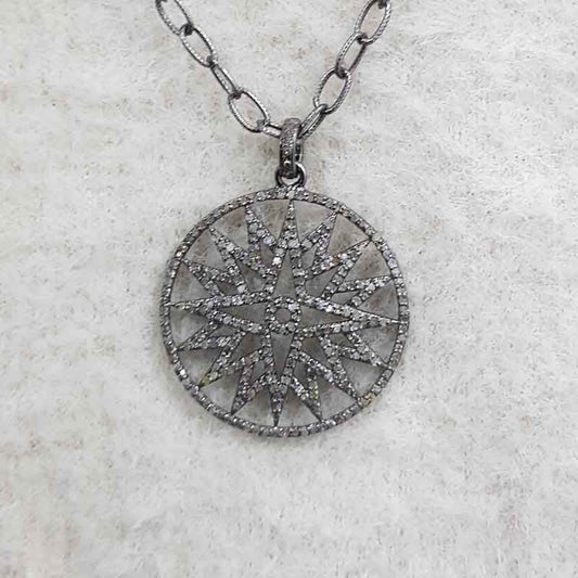Natural pave diamond 925 Sterling Silver Starburst Pendant, Stunning Necklace, Silver Jewelry
