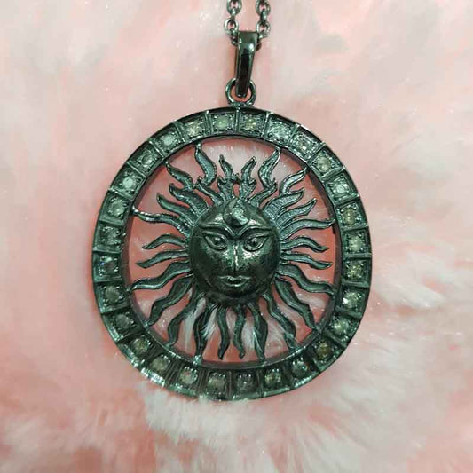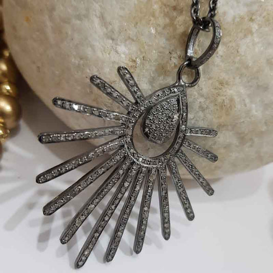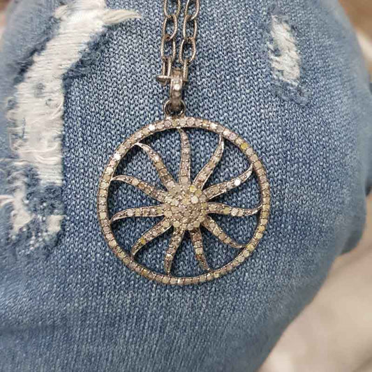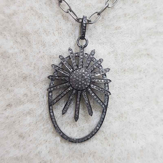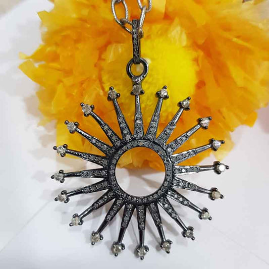 Sunburst pendant With Shiny Pave Diamond, Most Unique sunburst Necklace, Silver Jewelry