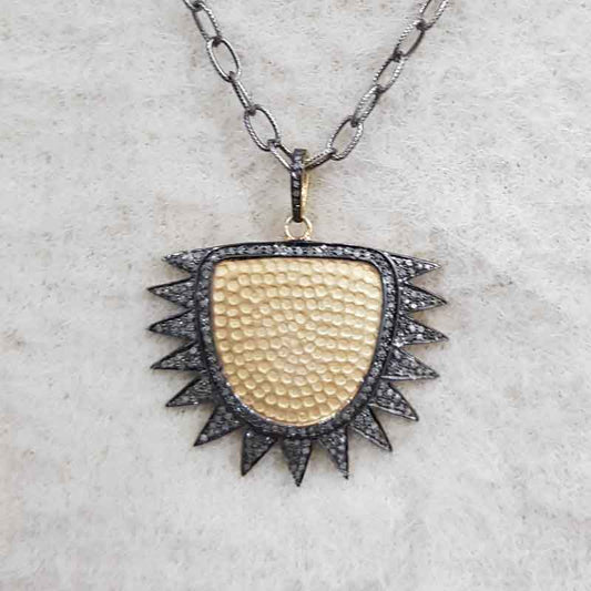 Handmade Designer Sunburst Pendant With pave Diamond layers, Attractive Sunburst Necklace Personalized Gift for love