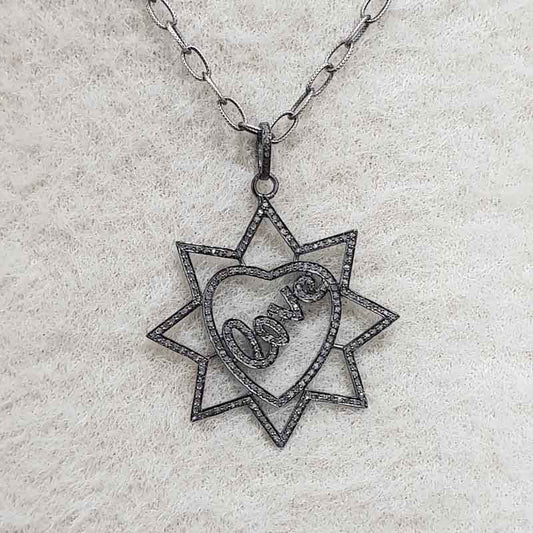 Handmade Love Designer Heart Star Pendant With Pave Diamond Layers, Silver Jewelry