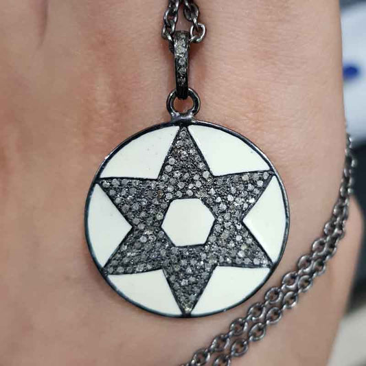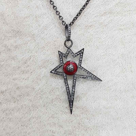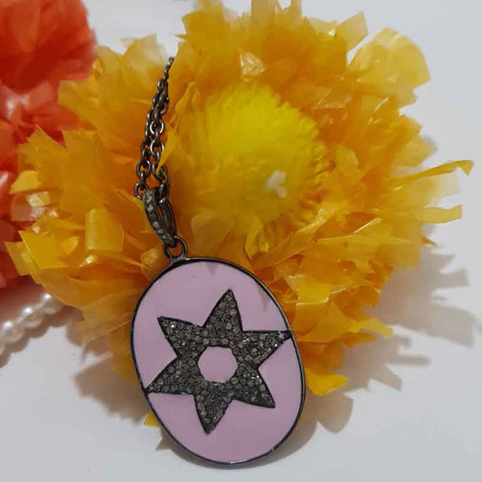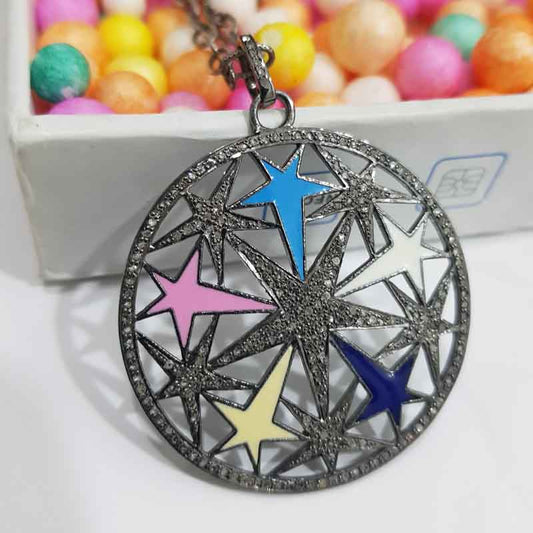 Sterling Silver Handmade Pave Diamond Star Enamel Pendant, Stunning Star shape