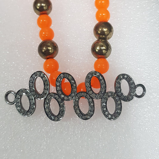 Round Designer Fancy Style Connector With Pave Diamond Layers, Silver Jewelry