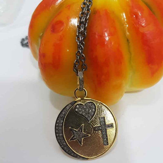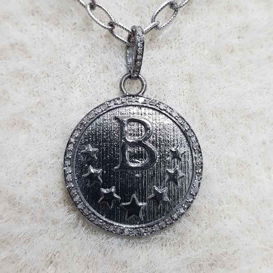 Round Disk With Stars Pave Diamond Pendant, Gift For Him, Her