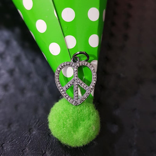 Peace Designer Pave Diamond Charm, Birthday Gift, Silver Jewelry, Cutest Charm