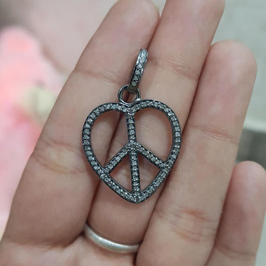 Peace Charm Pendant, 925 Sterling Silver Handmade Peace Pendent With Pave Diamond, Silver Jewelry