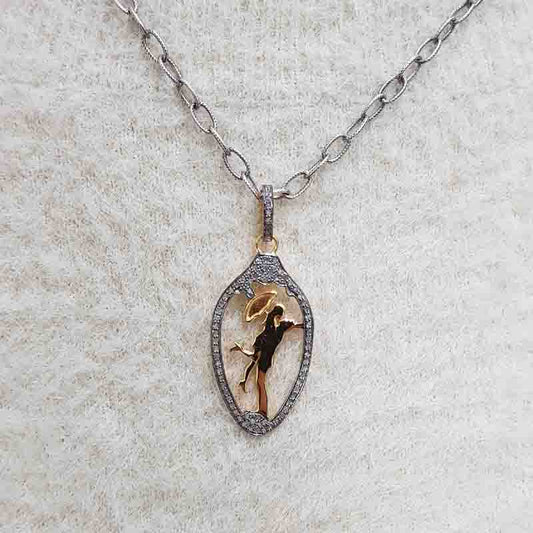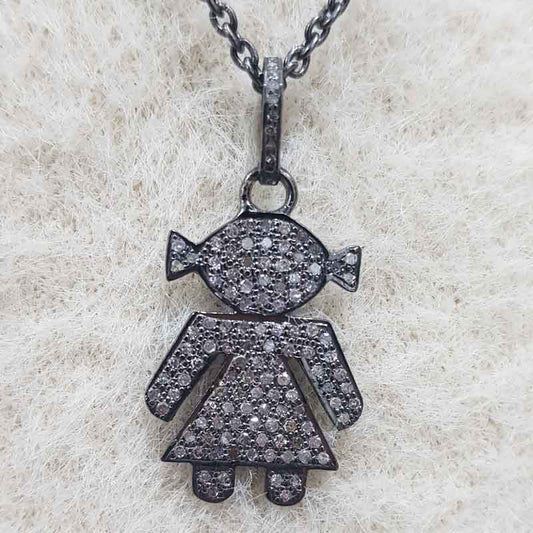 Beautiful Little Girl With Fully Pave Diamond Setting Silver Pendant, Cutest Doll Necklace, , Little Girl Design, Unique Design, Gift For Girl