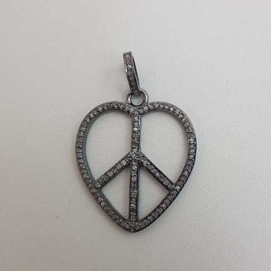 Beautiful Black Pave Diamond Peace Pendant, Silver Jewelry, Gift For Love