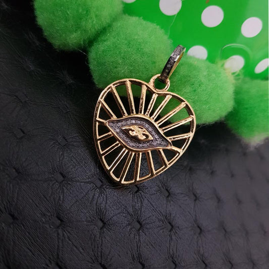 Beautiful Designed Pave Diamond Handmade Heart Pendent With Evil Eye, Gift For Lover, Anniversary Gift