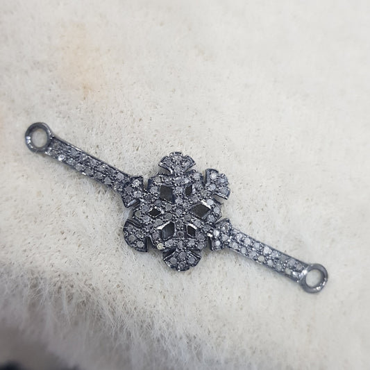Flower Style Pave Diamond Connector, Shiny Flower Connector, Silver Jewelry