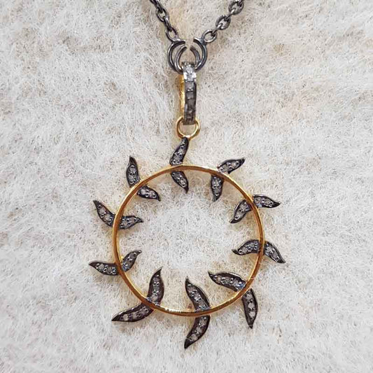 Fancy Designer Round Pendent With Pave Diamond Leaf, Designer Shiny Necklace, Silver Jewelry