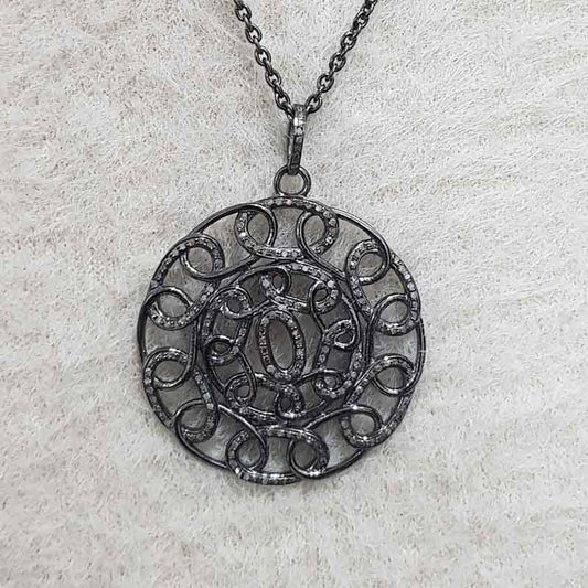Classic Round Disk, Round Designer Fancy Style Disk Pendent With Pave Diamond, Silver JEwelry