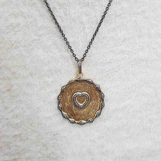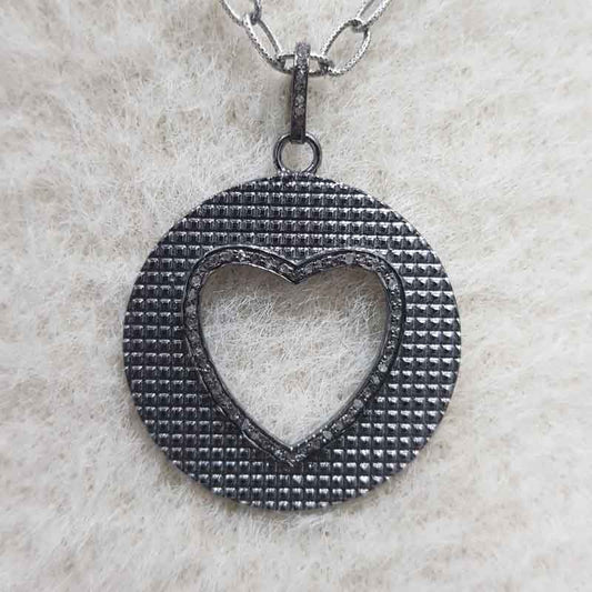 Coin Designer With Pave Diamond Small Heart Pendant, Unique Round Little Heart Necklace, Silver Jewelry