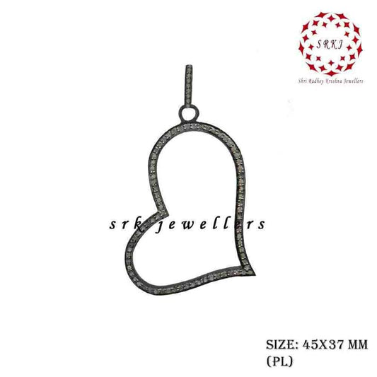 Black Designer Heart Shape 925 Sterling Silver Pave Diamond Pendant, Wedding Gift