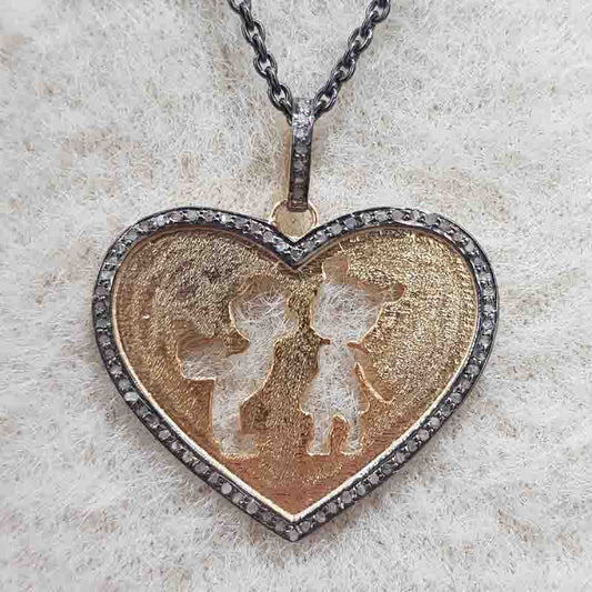Couple In Heart Pendant With Pave Diamond layers, Anniversary Gift, Silver Jewelry