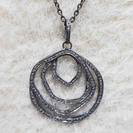 Chain Style Fancy Designer Pave Diamond 925 Sterling Silver Pendant, Round Fancy Necklace, Silver Jewelry