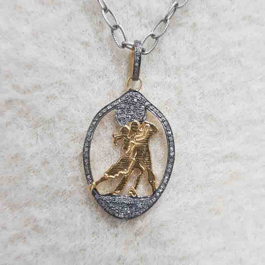 Charming Couple Pendant With Pave Diamond Layers, Dancing Couple Necklace, Silver Jewelry, Valentines Day Gift
