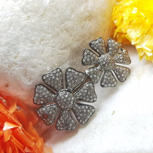 Flower Style Pave Diamond Handmade Designer 925 Sterling Silver Connector, Gift For Girl, Birthday Gift, Silver Jewelry