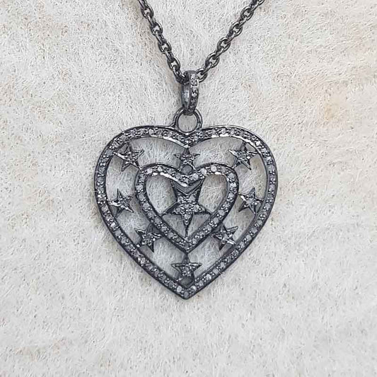 Fully Pave Diamond Setting Handmade Designer Heart pendant, Silver Jewelry