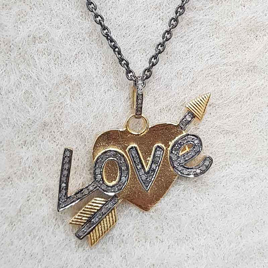 Fashionable Heart With Beautiful Love & Arrowhead 925 Sterling Silver Pendant, Amazing Gift For Lover
