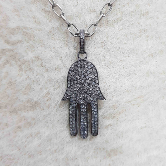 Fully Pave Diamond Setting Hamsa Hand Pendant, Silver Jewelry, Gift For Love