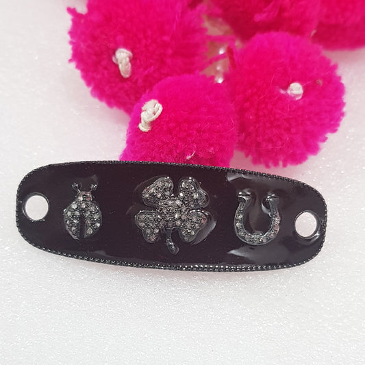 Glorious Fancy Style Pave Diamond Enamel Connector, Flower Connector, Silver Jewelry