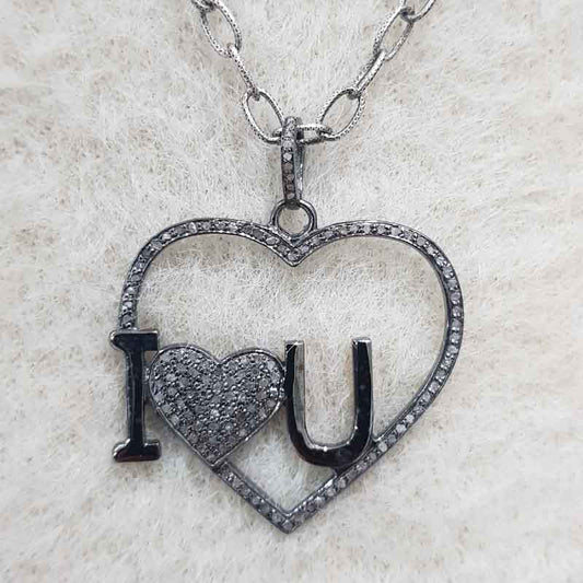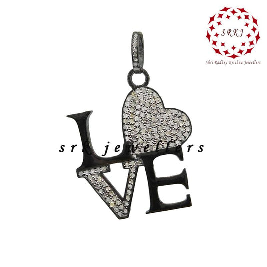 Glamorous Heart With Love Pendant, Handcrafted Heart Pendant with Pave Diamond, Gift For Wife