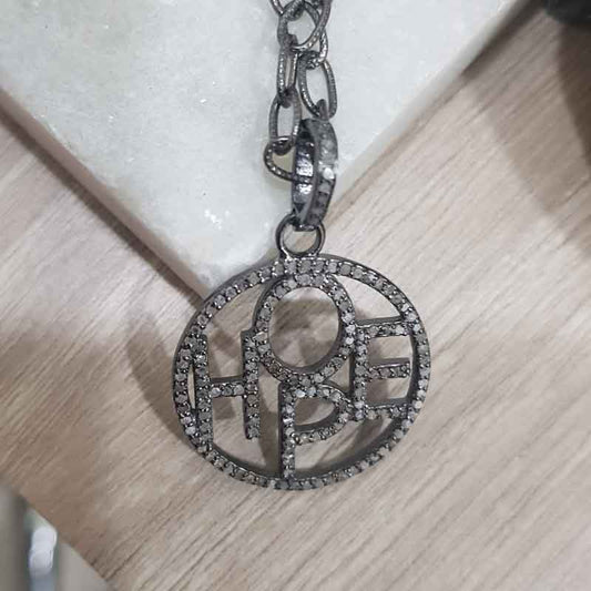 Good Looking Pave Diamond Round Hope Designed Black Pendant, Gift For Special One