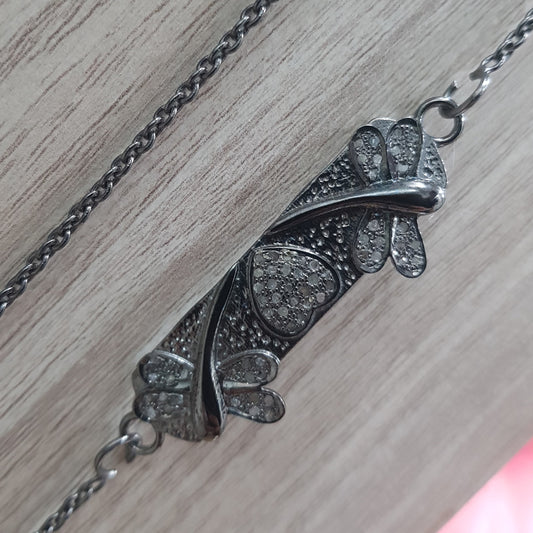 Glorious Heart And Butterfly Designed Pave Diamond Connector, Silver Jewelry, Gift For Someone