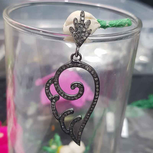Handmade Fancy Designer Pave Diamond Silver Pendant, Silver Jewelry, Handmade Antique Necklace