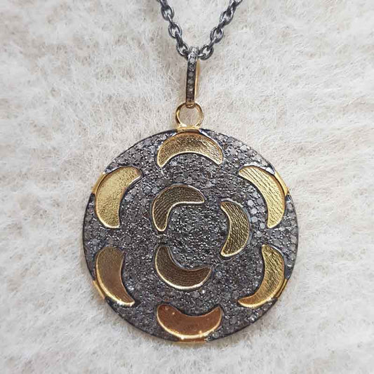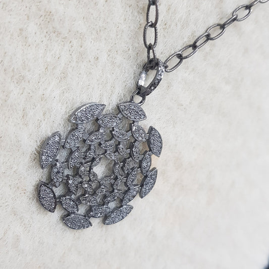 Handmade Designer Pave Diamond Flower Style Round Pendant, beautiful Flower Necklace, Silver Jewelry