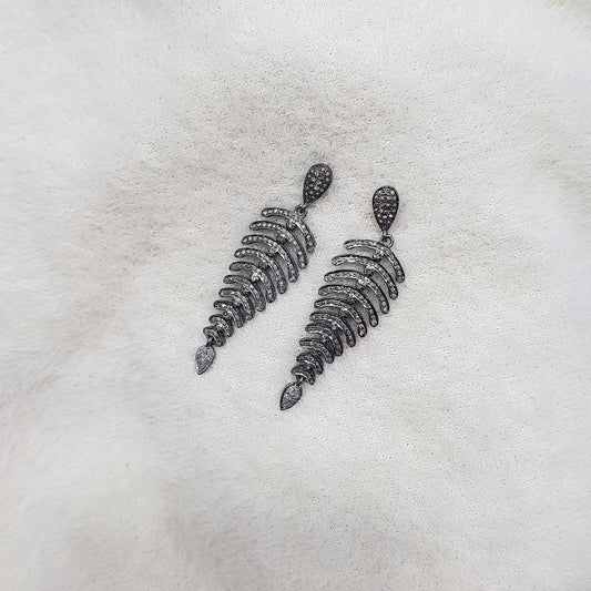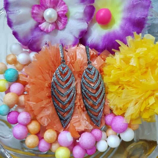 Handmade Style 925 Sterling Silver Earrings With Pave Diamond Layers, Fancy Earring, Gift For Wife, Anniversary Gift
