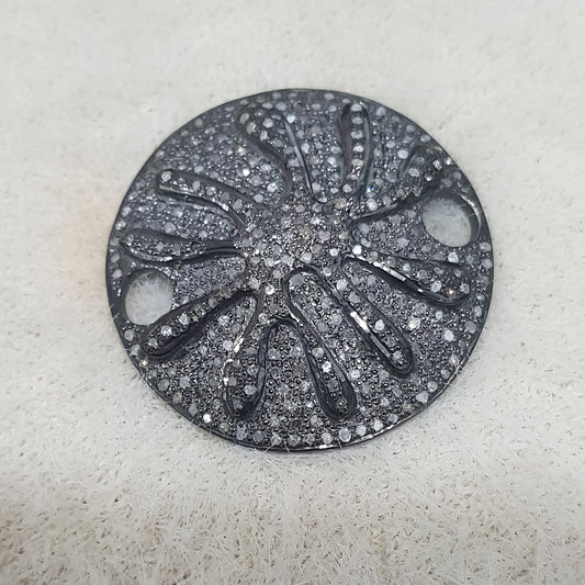 Handmade Designer Round Pave Diamond Wrist Rock/Connector, Round Fancy Connector, Silver Jewelry